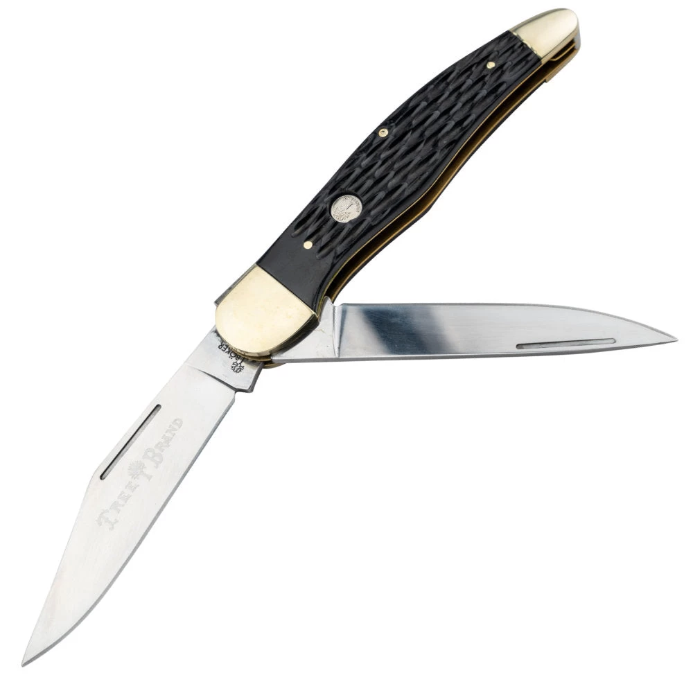The Boker Jigged Brown Bone Traditional Series 2.0 Folding Hunter KnifeĀ is a hunting essential with durableĀ jigged brown bone handles. This slip-joint folding knife has a clip blade and a skinning blade, both crafted fromĀ D2 stainless steel. The clip blade has anĀ engraving of the traditional Tree Brand logo.