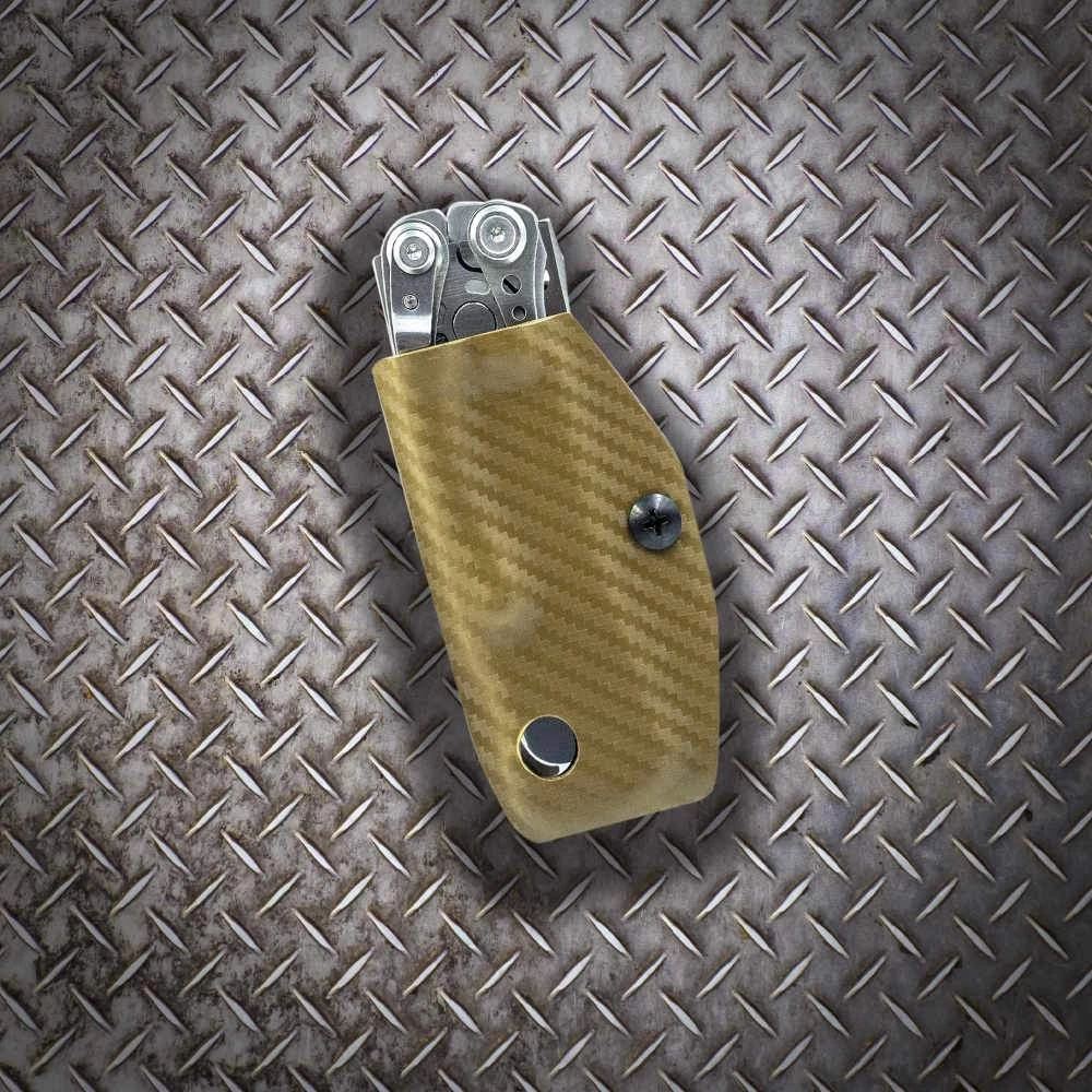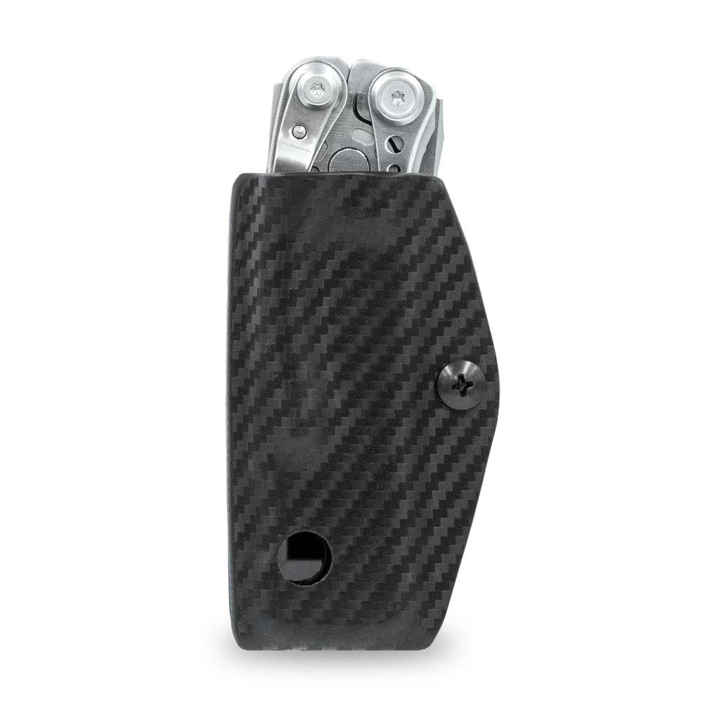 This Clip & Carry Kydex Sheath is designed to fit the Leatherman Skeletool. It is proudly constructed in the USA from a durable kydex material, and can be adjusted to your preferences.