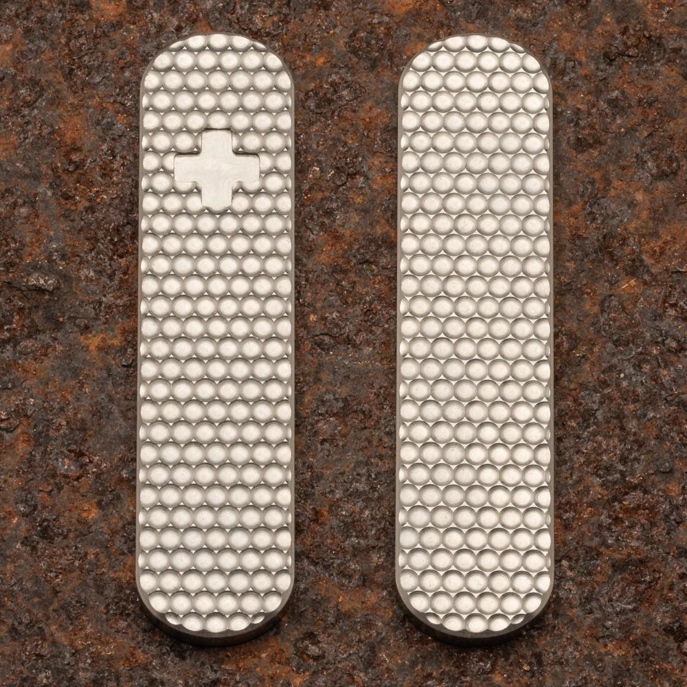 Daily Customs 58.2 GolfBall Titanium Handles provide a stunning upgrade for any Victorinox 58.2 mm (2.25-inch) Swiss Army Knife, turning it into a beautiful collector’s item. These rugged handles are both elegant and practical, providing a unique customization for your everyday-carry.