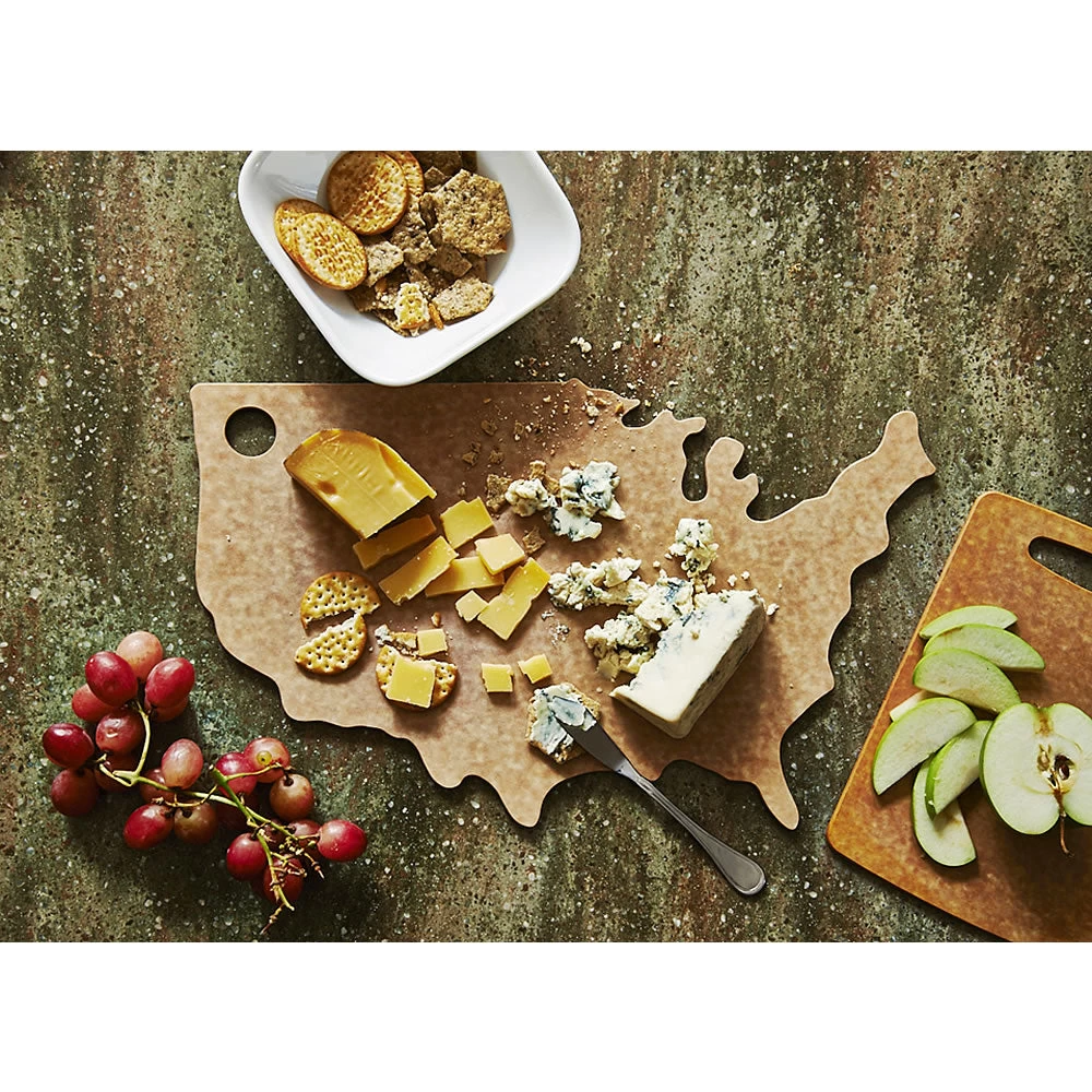 The Epicurean USA Cutting Board – Natural goes from cutting to serving seamlessly. Slice and serve meats and cheeses on this unique board that is shaped like the United States. There’s plenty of room for a hearty snack on this 17.5″ x 11″ board. This kitchen-ready USA cutting and serving board adds whimsy and fun without kitsch. Makes a great gift idea, too.