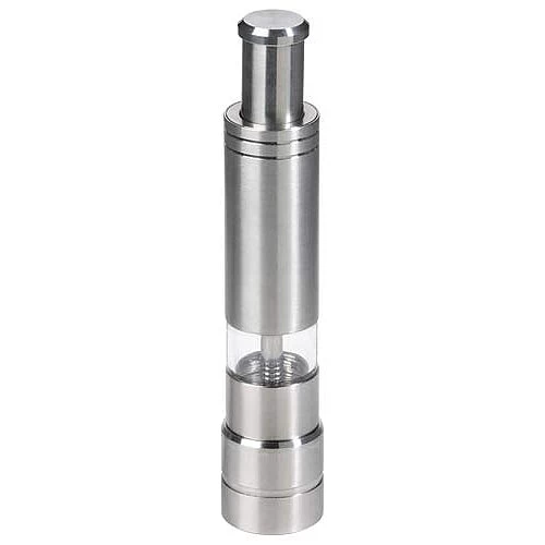 With its sleek, stainless steel design and easy, one-handed operation, the Pump and Grind Mill delivers freshly ground salt with the press of a thumb.