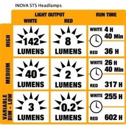 The INOVA STS LED Headlamp is a multi-mode, dual colored LED headlamp with Swipe-to-Shine Technology, an innovative design that gives you easy access to multiple modes in two colors, all with one simple swipe.