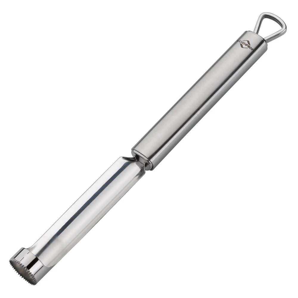 The Kuchenprofi Parma Apple Corer makes short work of coring even a large batch of apples. The sharp, serrated, tubular blade cuts right down through the center of apples.