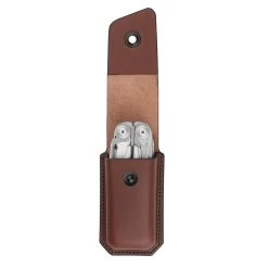 The Leatherman Large Ainsworth Premium Leather Belt Sheath is the best Leatherman sheath yet. This premium sheath is made from vegetable tanned top grain drum-dyed cowhide. With use, this timeless sheath will age beautifully, developing character and withstanding all your adventures throw at it. A custom snap secures your tool for years of use. This premium sheath is backed by a 2 year Leatherman warranty.