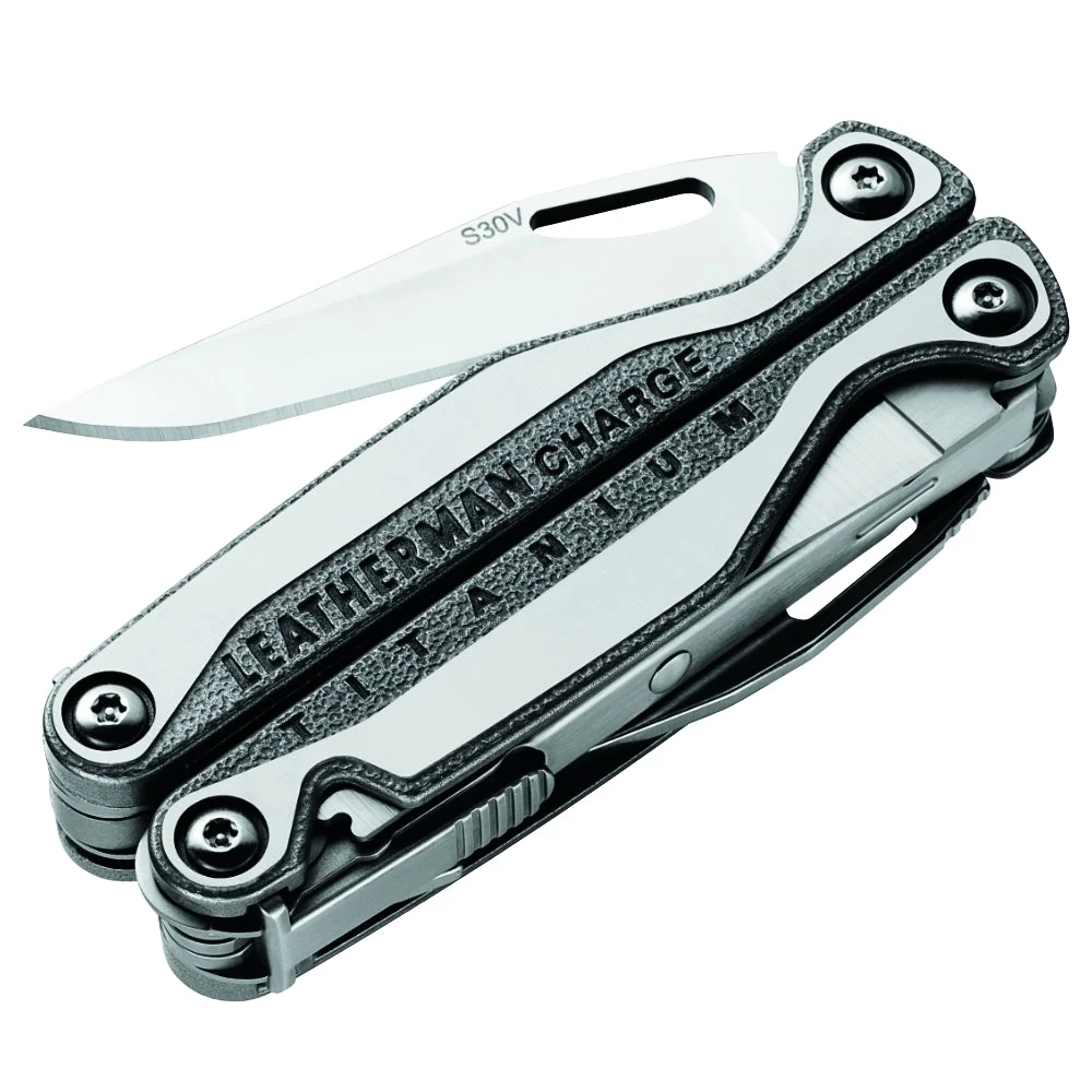 The Leatherman Charge + TTi Multi-tool is an 19-in-1 multi-tasker with all locking features, outside-accessible tools that can be opened and locked with just one hand, and a Titanium handle scales. The Charge Plus TTi is loaded with Leatherman’s most-requested tools and crafted from premium materials. Every tool on the Charge Plus TTi is built for any job – large or small. The strong, corrosion-resistant blade is made of S30V steel, the wire cutters are durable and replaceable, and the robust scissors cut through virtually anything.
