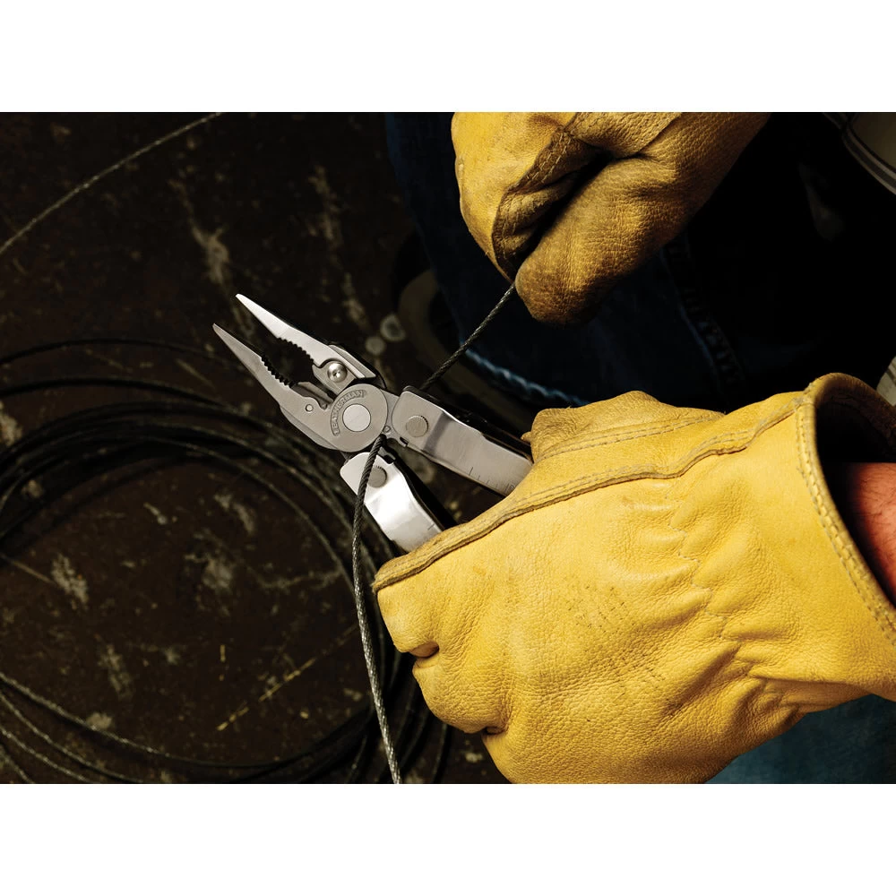 The Leatherman Super Tool 300 Multi-Tool is more than prepared to take on even the toughest project. This model takes the name Super Tool to a new level with 19 tools, bigger and stronger pliers, cutout sides for access to components even with work gloves on, and a removable file allows you to repair or sharpen on the spot. Ten years in the making, the Super Tool 300 is ready to get to work.