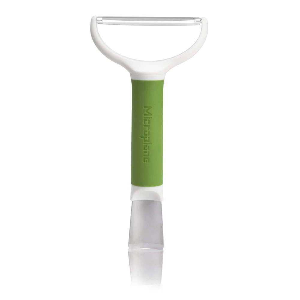 The Microplane 2-in-1 Cabbage Tool is a combination peeler and corer. The twin peeler blades shred lettuce or cabbage, or peel large produce such as eggplant. The corer blade quickly and easily cuts and removes cores.