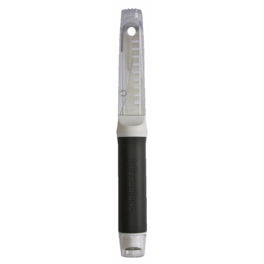 Its razor-sharp, American-made blades are crafted with etched stainless steel that effortlessly tackle even tough nuts and spices like nutmeg and cinnamon. The soft-touch handle is comfortable, ergonomic, and provides a secure grip.