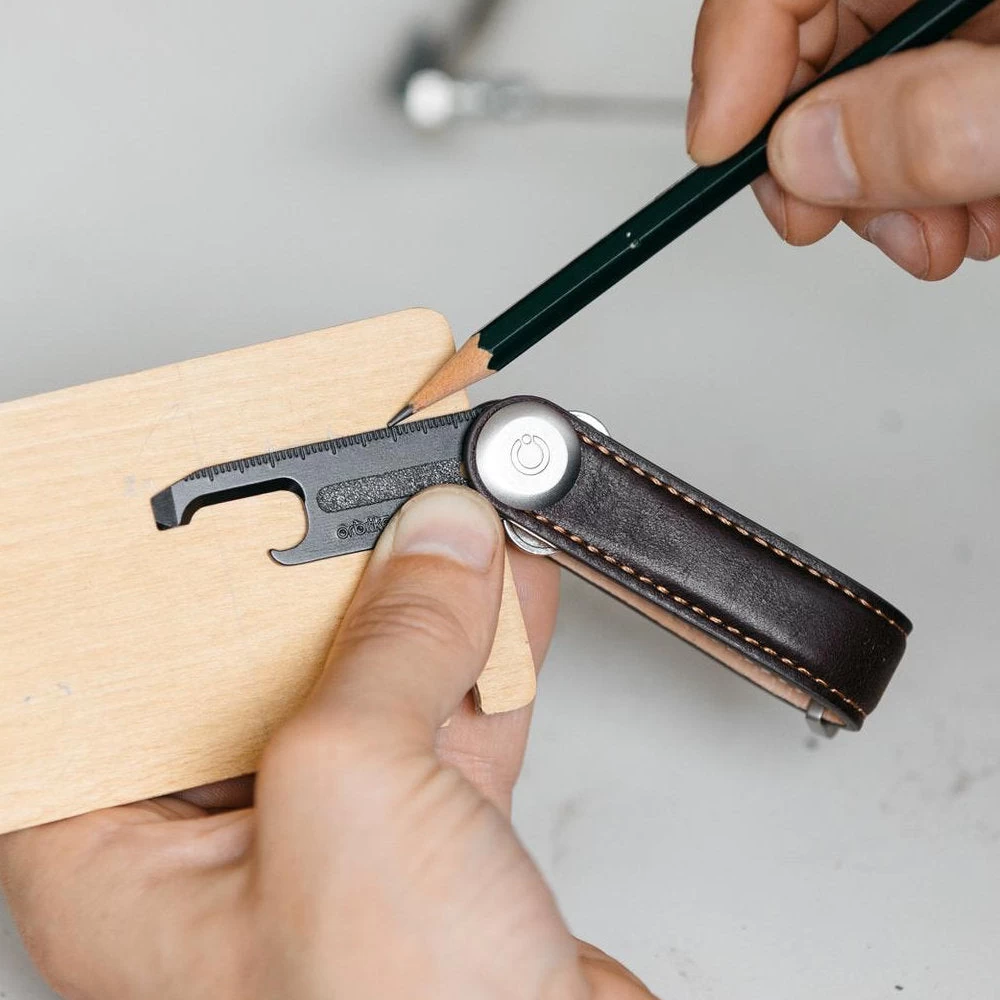 The Orbitkey Multi-tool Accessory v2 is 9 tools in 1 slim profile the size of a single standard key. This clever multi-tool, which tucks neatly into any Orbitkey Key Organizer, features a box cutter, bottle opener, pry bar, flat-head screwdriver, PH2 Phillips-head screwdriver, letter opener, metric ruler, imperial ruler and coarse file.