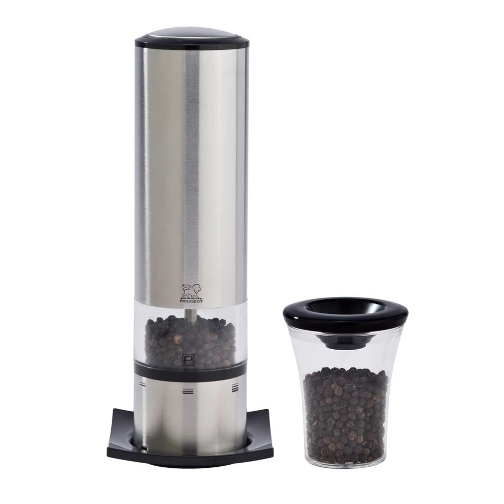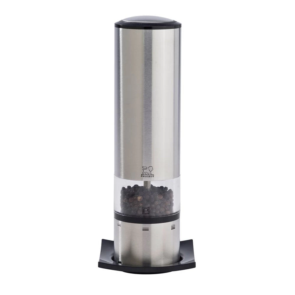 The Elis Sense 8″ Soft Touch Electric Pepper Mill by Peugeot delivers perfectly ground pepper with the touch of a button. The pepper mill comes with a squared dish for storing and the pre-measured spice vial with funnel makes refilling a synch. The acrylic in the Elis Sense Pepper Mill is highly polished to avoid scratches and cloudiness, keeping it crystal clear for years to come.