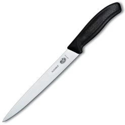Victorinox knives all have high carbon, stainless steel blades that are hand finished at Victorinox in Switzerland by skilled craftsmen. Each knife is stamped from a single sheet of metal. The blade is then hardened, tempered, ground, polished, etched and finished. Victorinox uses a special tempering process to produce an edge that can be resharpened over and over again.