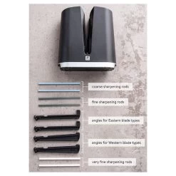 This innovative sharpener houses ceramic rods for both coarse and fine sharpening. All four sides of each rod can be used for long-lasting sharpening performance.