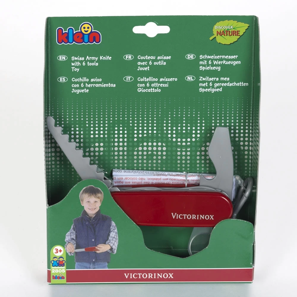 Many children admire a Swiss Army knife belonging to an older family member. The Swiss Army Bambino allows them to play safely along with the grown-ups. This colorful toy Swiss Army Knife features six plastic tools.