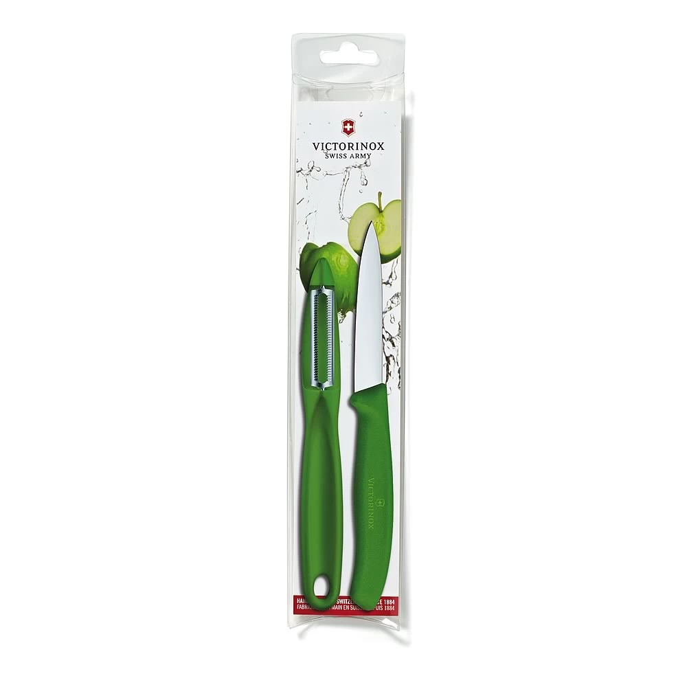 This Victorinox Classic Kitchen Prep Set includes a Classic Serrated Peeler and a Classic 3.25″ Paring Knife. With its contoured nylon handle, the Classic 3.25″ Paring Knife is extremely lightweight and durable – the perfect addition to any chef’s kitchen. These colorful tools will brighten your kitchen prep work.