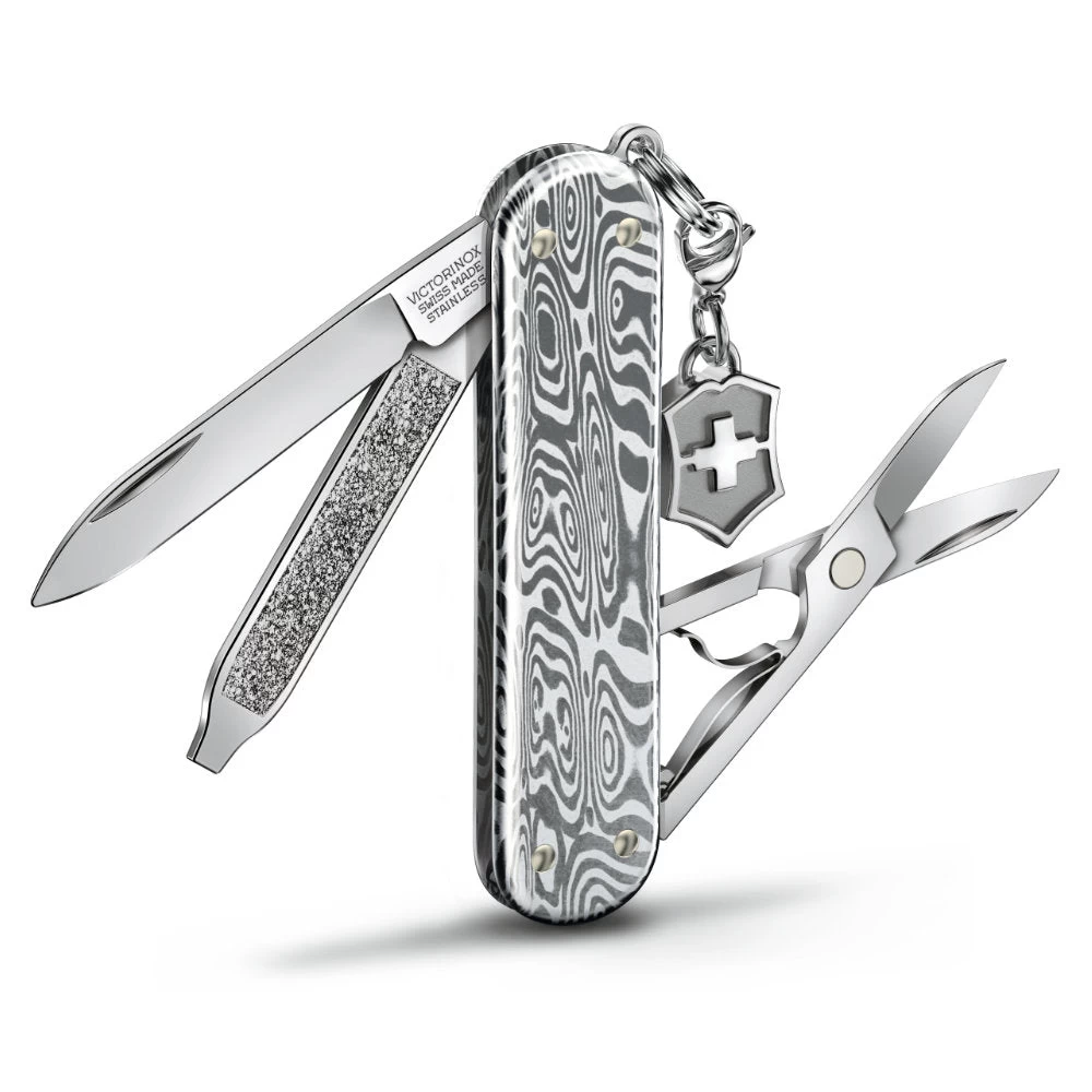 Tucked inside the Damast Classic SD are the features that have made the Classic SD Swiss Army Knife a bestseller and indispensable everyday carry – a small, sharp blade; scissors; and a nail file with a screwdriver tip.