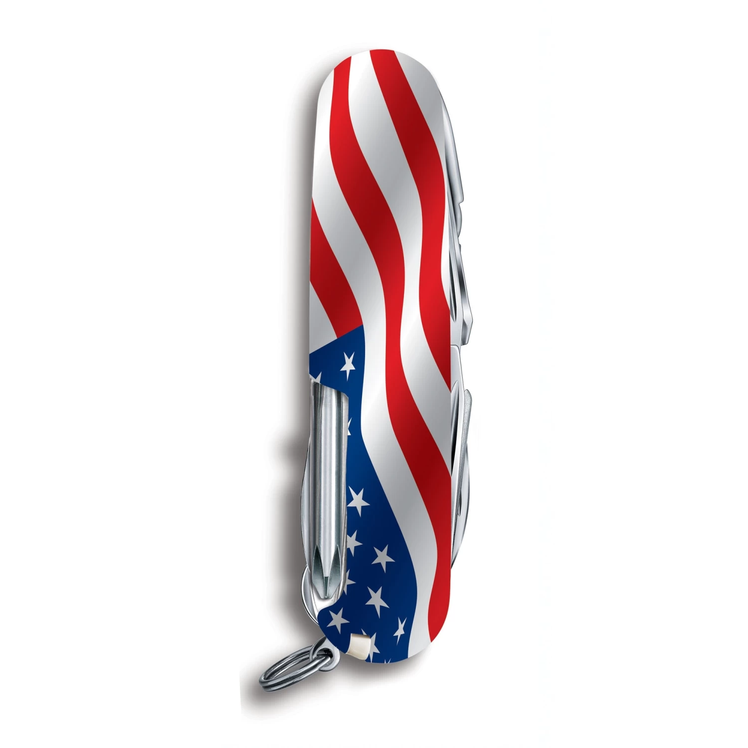 The American Flag Fieldmaster Swiss Army Knife by Victorinox is a Swiss Knife Shop Design Studio creation. This colorful salute to the USA features an artistic rendering of the American flag imprint on both sides as it waves in the wind. Show your true colors when carrying this unique version of the Fieldmaster.
